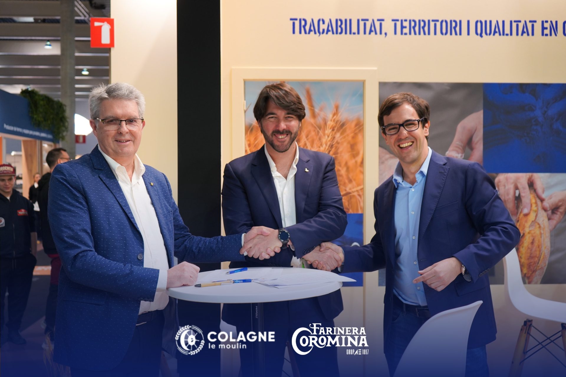 La firma del acuerdo tuvo lugar el pasado 23 de marzo y contó con la participación de Luis Coromina, Director General de Farinera Coromina; Jean Pierre Constans, Director General de Moulin de Colagne; y Félix Mestre Rius, Presidente de CEOPPAN.